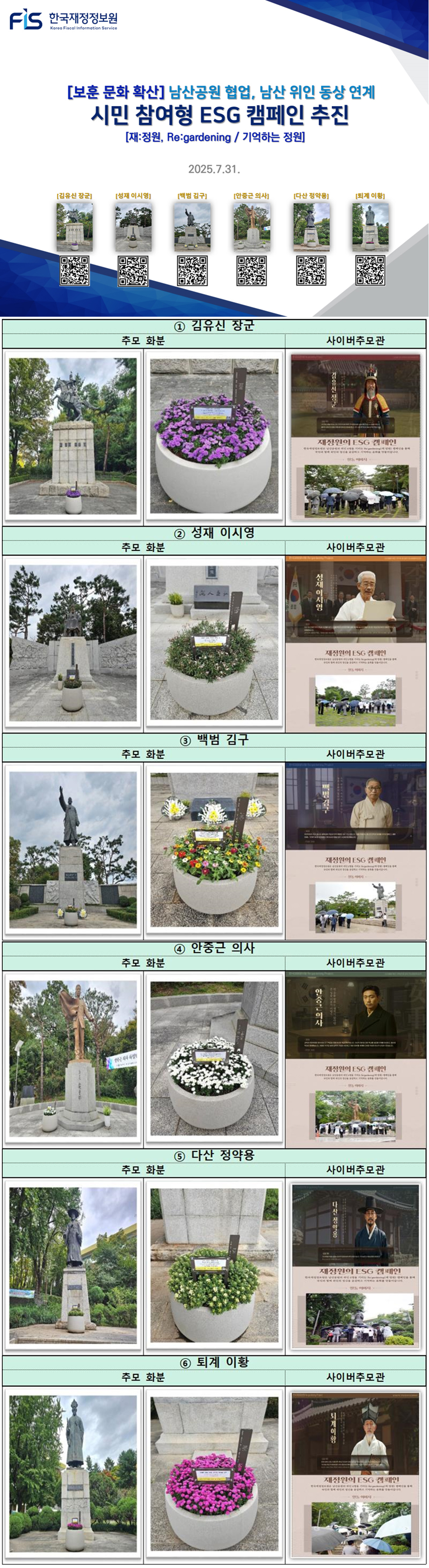 한국재정정보원, 역사전문가 최태성 강사 보훈특강 진행 - 남산공원 위인 동상 연계‘기억하는 정원’운동으로 보훈문화 확산 추진 -