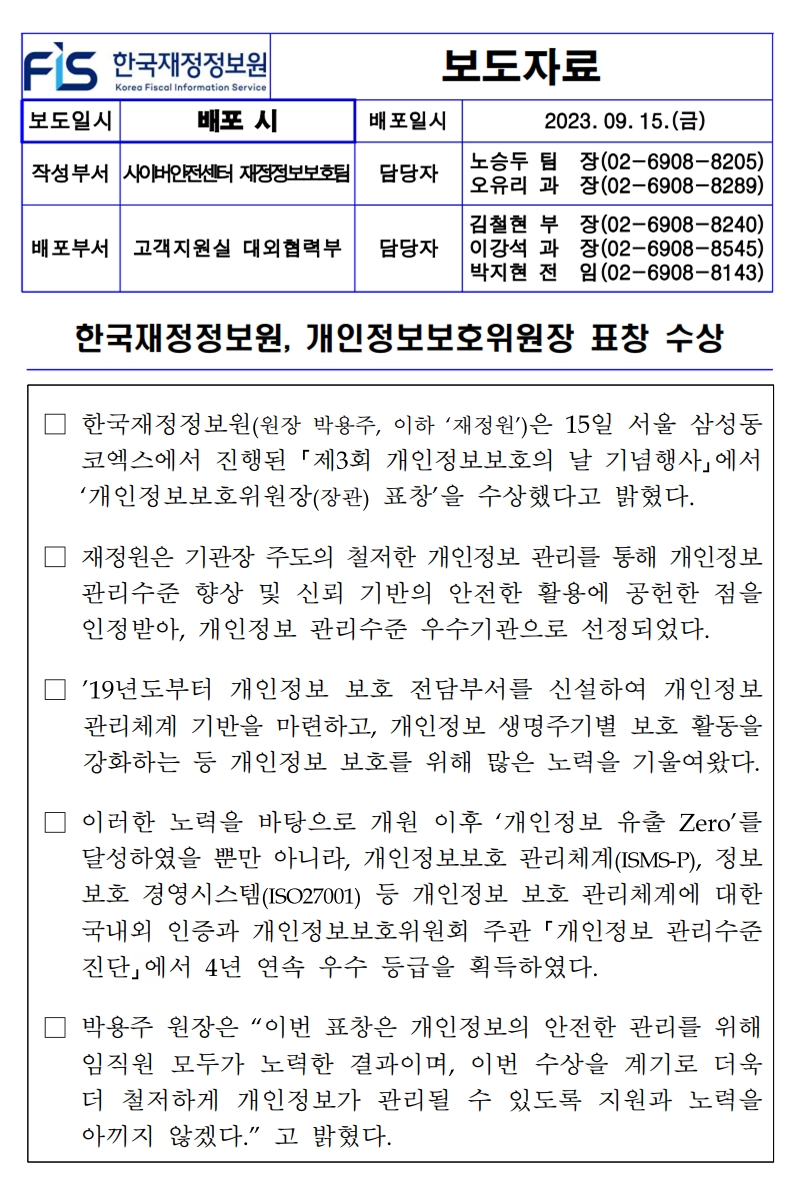 [보도자료] 한국재정정보원_공공기관 개인정보 보호수준 평가_6년 연속 우수기관으로 선정.jpg
