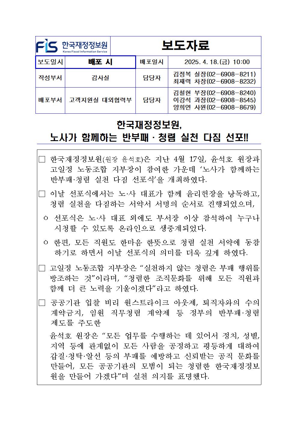 [보도자료] 한국재정정보원, 노사가 함께하는 반부패·청렴 실천 다짐 선포!!.pdf