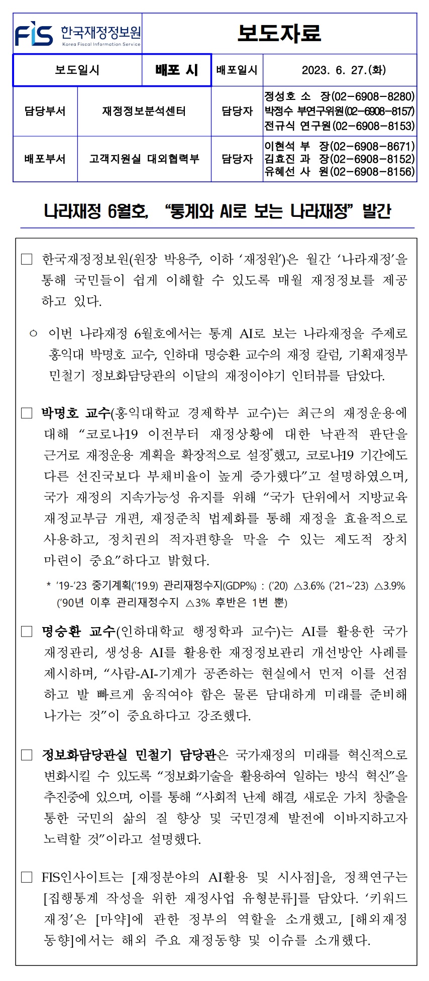 [보도자료] 나라재정 6월호, “통계와 AI로 보는 나라재정” 발간.jpg