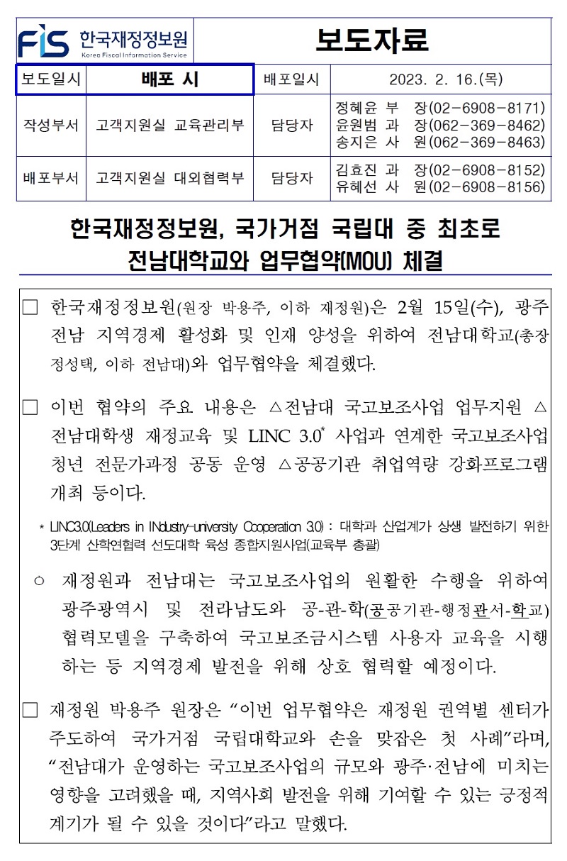 [보도자료] 한국재정정보원, 국가거점 국립대 중 최초로 전남대학교와 업무협약(MOU) 체결.pdf