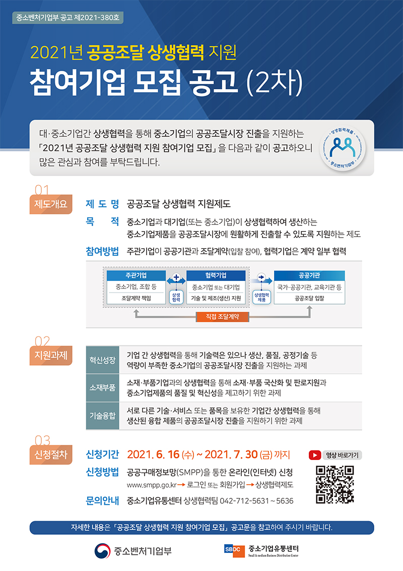 2021년 공공조달 상생협력 지원 참여기업 모집 공고(3차)
