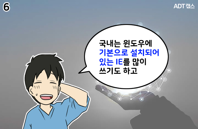 • 이제는 역사속으로 사라지게 된 IE(인터넷 익스플로러)는 마이크로소프트(MS)의 상징인 대표적인 소프트웨어입니다. 1995년 시작되어 인터넷을 세상에 소개됐고, 국내 많은 이용자에게 사랑을 받아왔는데요. 약 26년간 사용해왔던 IE가 왜 종료되는지, 이후 대체할 수 있는 웹 브라우저에는 무엇이 있는지 보안툰으로 함께 알아보도록 하겠습니다.