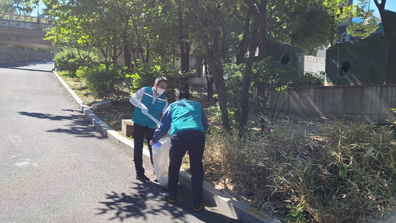한국재정정보원 e나라도움운영본부는 9월15일, 탄소중립사회 실현을 위한 지역사회 녹지관리 활동을 실시하였다. 봉사활동은 e나라도움운영본부장 등 19명의 직원이 참여하였으며, 회사 주변과 남산 공원에 버려진 쓰레기를 수거하고, 고사목 등 길거리 위험요소에 대한 신고 등의 활동을 수행하였다. 향후에도 공공기관의 사회적 가치 실현을 위한 활동을 지속 수행할 예정이다. * 코로나19 예방을 위하여 마스크 착용 후 4인 1조로 구역을 분배하여 봉사활동 수행