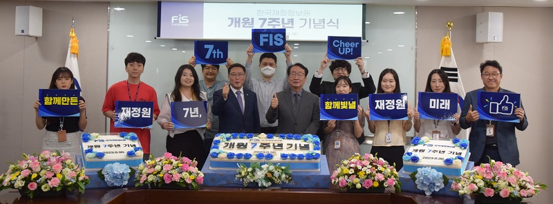 한국재정정보원(원장 박용주, 이하 ‘재정원’)은 6월 30일, 개원 7주년 기념행사를 실시했다. 이번 행사에는 원장, 부원장, 노조지부장, 보직자 및 표창 수상자 등이 참석했다. 재정원에 성장과 발전에 기여한 직원 10명에게 표창장을 수여하고, 각 직급별 최연소 직원이 참여하는 떡케이크 커팅식을 가졌다. 특히, 포스터 섹션 이벤트는 “7th FIS Cheer UP! 재정원 7년, 함께 빛낼 재정원 미래 파이팅!”이라는 메시지를 통해 많은 박수를 받았다. 박용주 원장은 “직원들을 헌신과 노고에 감사하며, 소통과 협력을 통해 재정원만의 조직문화를 만들어 나갈 것”을 당부했다.
