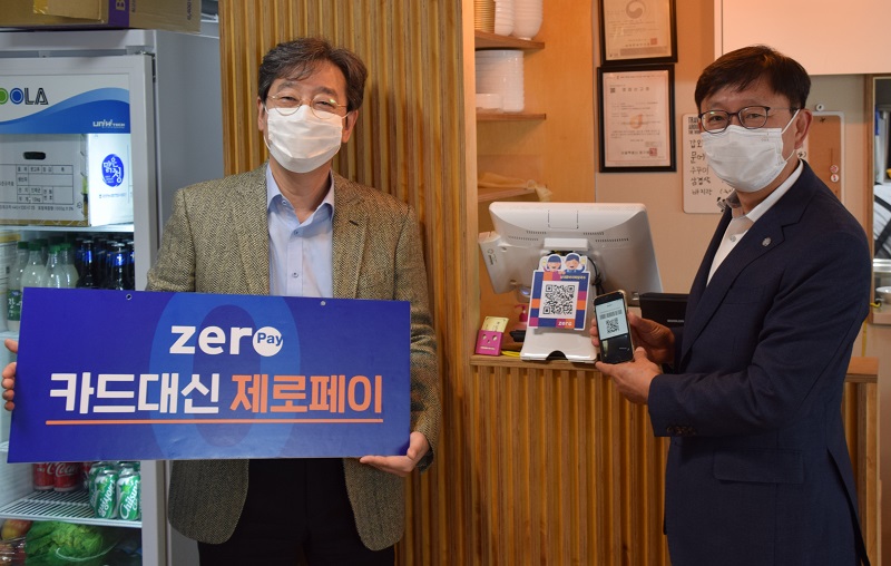 김재훈 한국재정정보원장(오른쪽)이 모바일 간편결제를 이용하였다. |