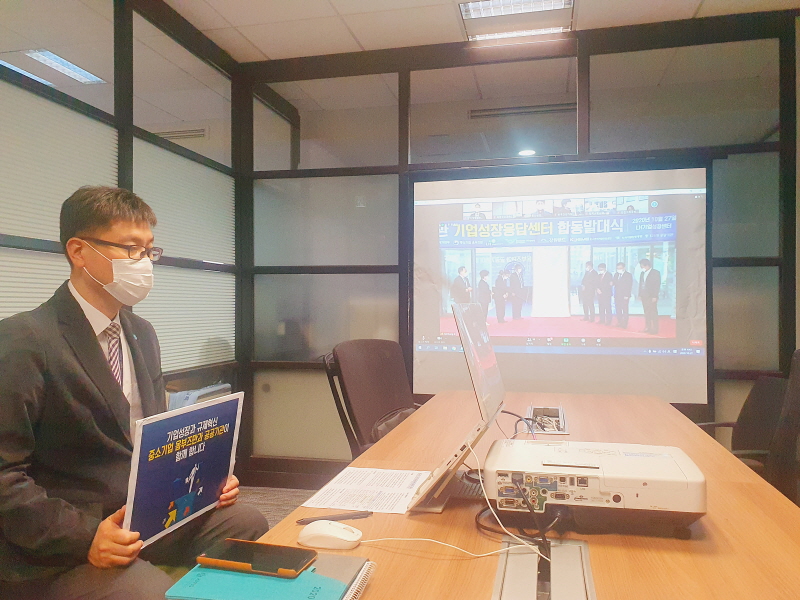- 한국재정정보원이 '공공기관 기업 성장응답센터 합동 발대식'에 비대면 화상 연계로 참여하고 있다. |